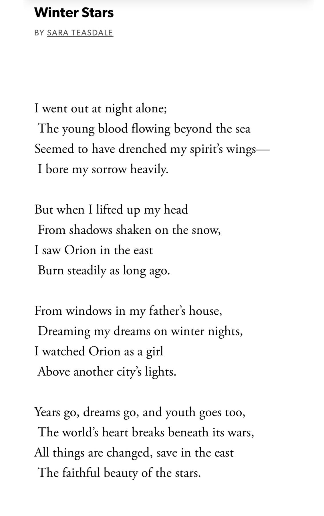 Well, the holidays are winding down (cue the emotional hangover!), and I hope you had a nice time. We visited my mother-in-law in Connecticut at the beginning of the holidays and celebrated her 75th birthday with a party and a trip to Wachusett for “night skiing” (sounded ominous but was very pretty). I’m not a skier, so I nursed a beer and a cider doughnut and snapped pics. We flew back to Austin on Christmas Eve. George (almost 14) was worried about this itinerary, saying “Mom, that’s how every Christmas movie begins!” but everything was okay. This week I have been at the hospital, on a team where I am paired with just one resident. She and I have been doing ‘poetry on rounds’ (where we start rounds with a poem) which has been dreamy. Here is one of the poems we read.